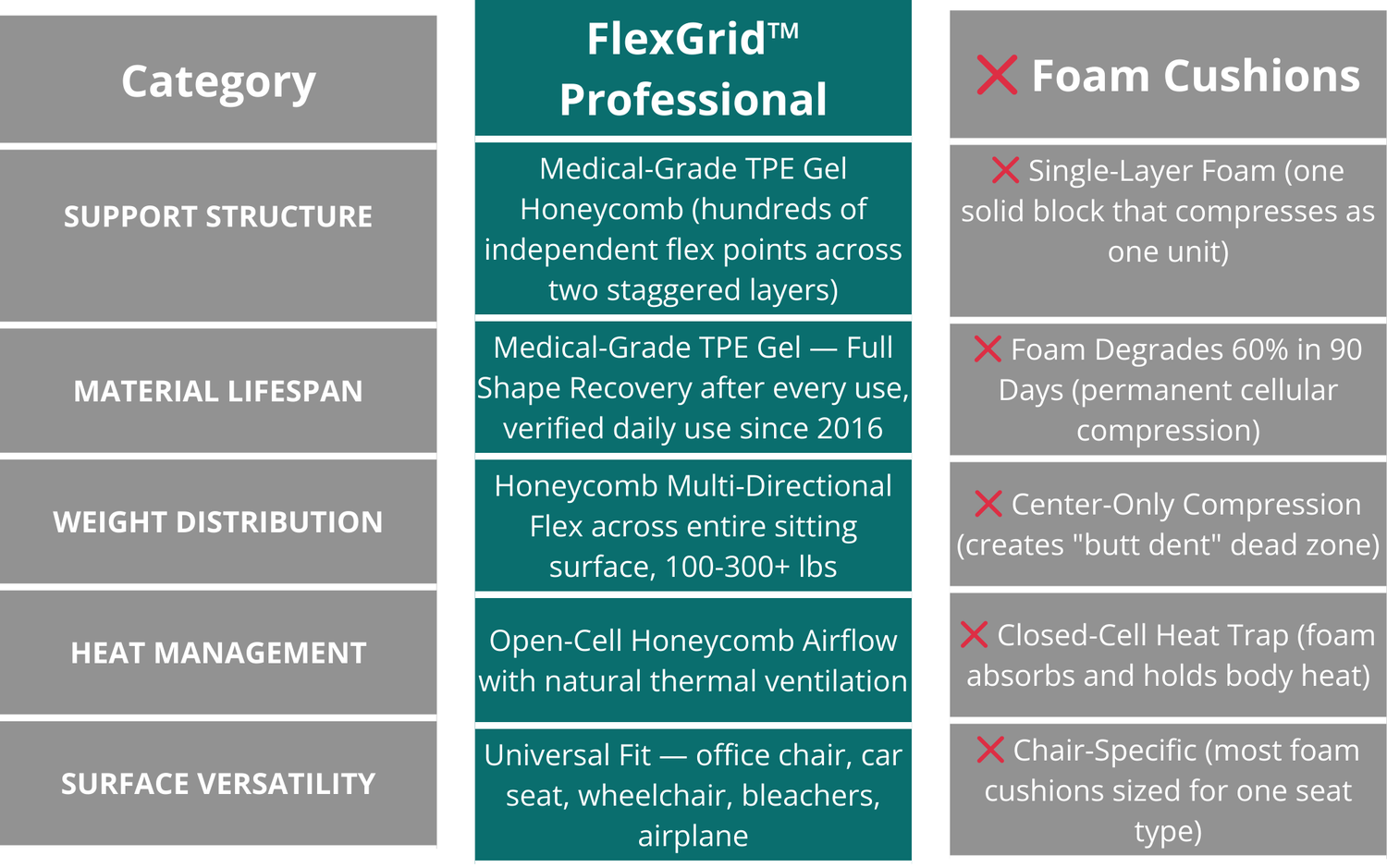 FlexGrid™ Is The Smarter, Longer-Lasting Way to Sit Without Pain