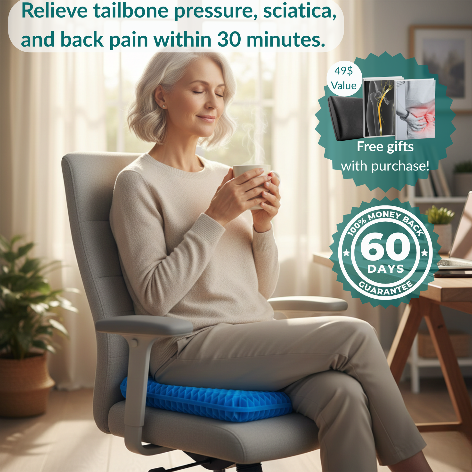 Reclaim your day with the MedFlex™ Dual-Layer Gel Seat Pro. Whether it's tailbone pressure, sciatica pain, or numb legs after 30 minutes, this isn't just a cushion — it's your daily foundation for pain-free sitting.
