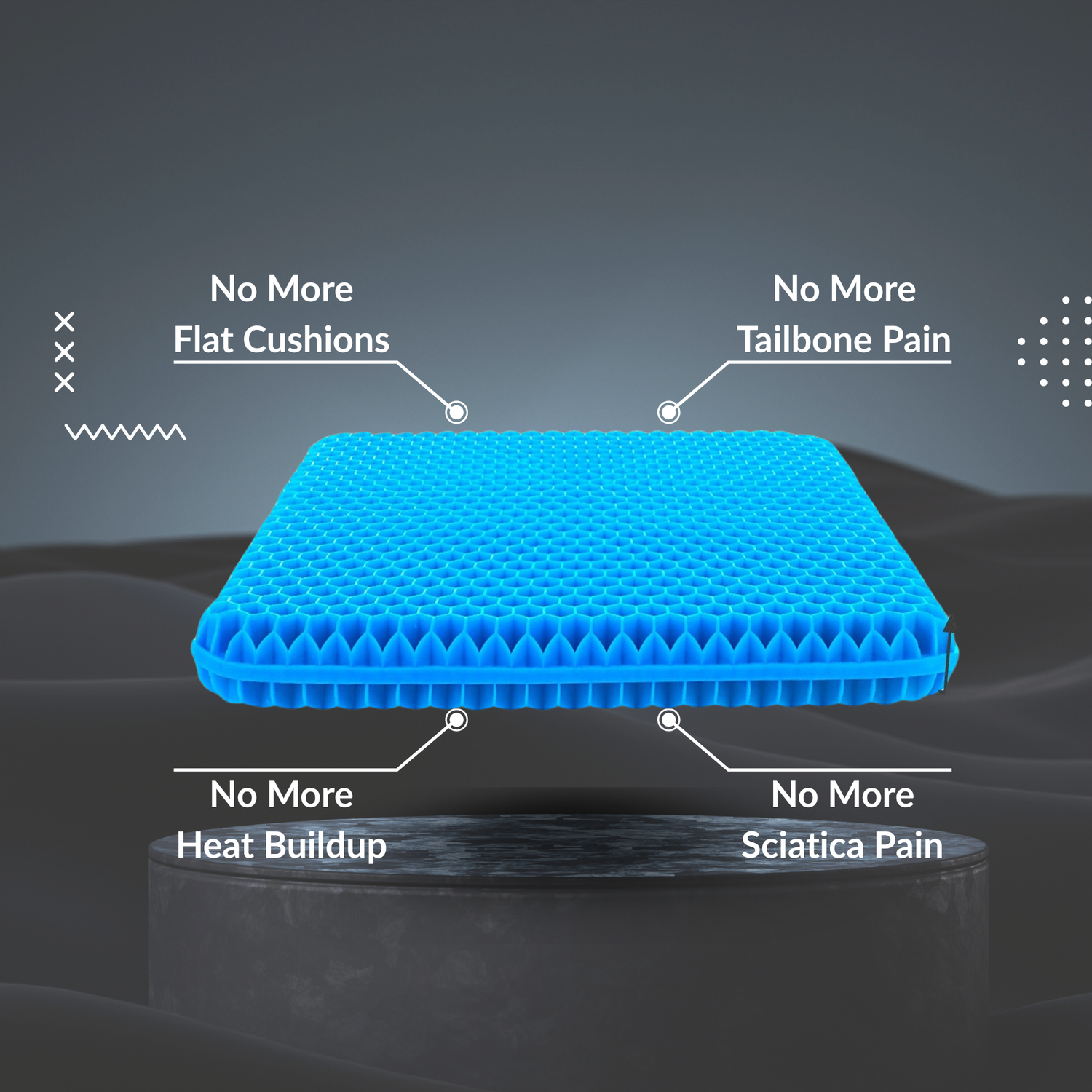 It's built from medical-grade TPE gel molded into a honeycomb structure that adapts to your body, works from your first sitting, and actually maintains full support month after month — not just padding that compresses flat like every foam cushion you've tried before.