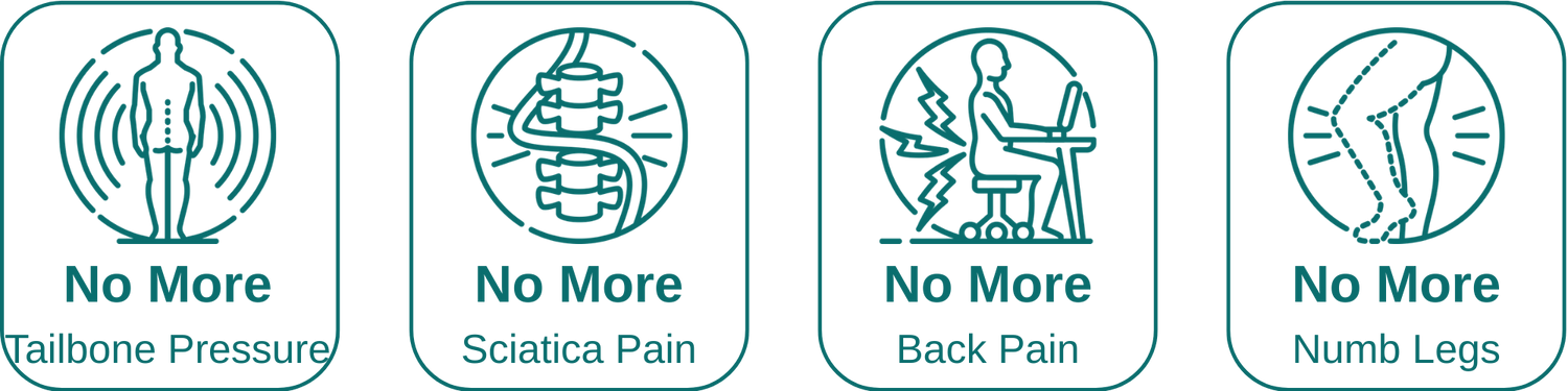 MedFlex is designed to relieve tailbone pressure, lower back strain, sciatica discomfort, hip pain, and numbness from prolonged sitting. Customers report relief across a wide range of conditions including post-surgery recovery, herniated discs, hemorrhoids, pressure sores, and general sitting fatigue. It's particularly beneficial for long-haul drivers, desk workers sitting 8+ hours, wheelchair users, and anyone whose current chair or cushion has stopped providing adequate support.