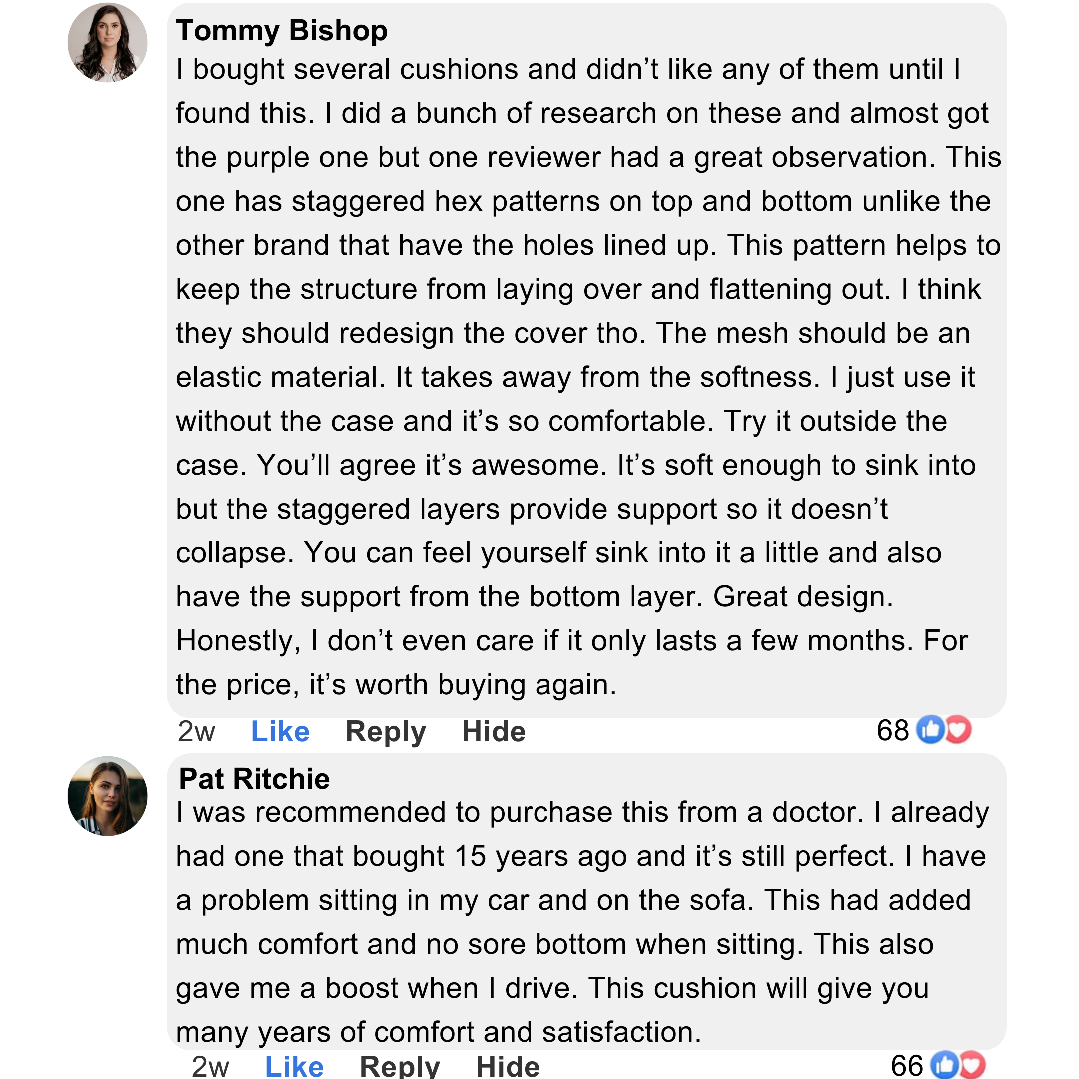 said they bought a second MedFlex for another seat, with many using theirs across office chairs, car seats, and wheelchairs — calling it the first cushion whose medical-grade gel didn't degrade after 6+ months of everyday use.
