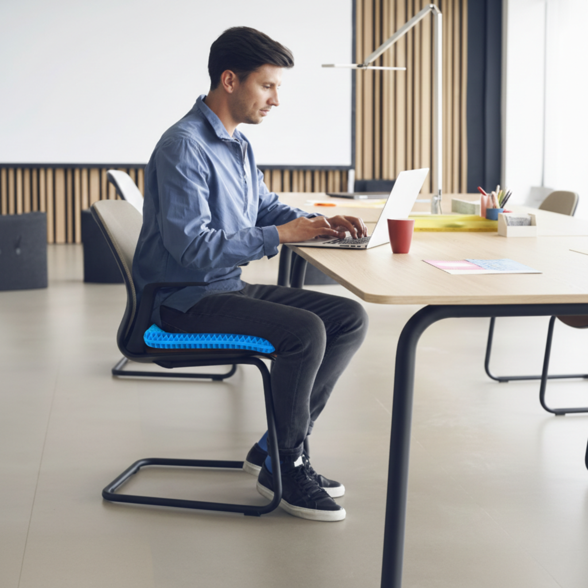 In just one sitting, the honeycomb distributes your weight across the entire sitting surface, eliminates the pressure hotspots foam creates, and ventilates heat through open-cell channels — so you can sit longer, cooler, and pain-free from day one.